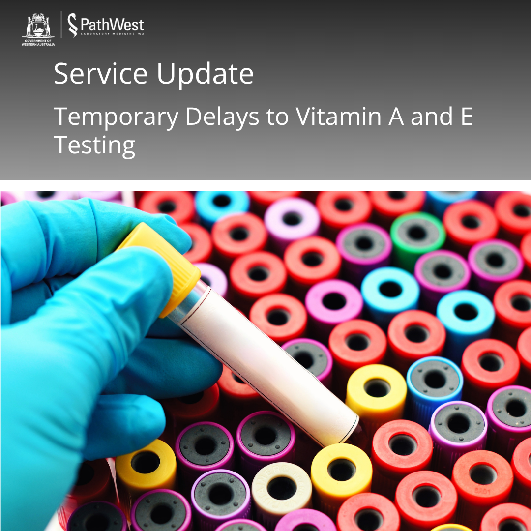 PathWest is currently experiencing delays with Vitamin A and E testing due to a temporary reagent supply issue.
