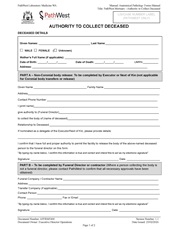 Funeral directors are required to complete an Authority to Collect Deceased form before attending a PathWest Mortuary. This form provides confirmation that you have been authorised by the executor or next of kin to collect the deceased from our care.
